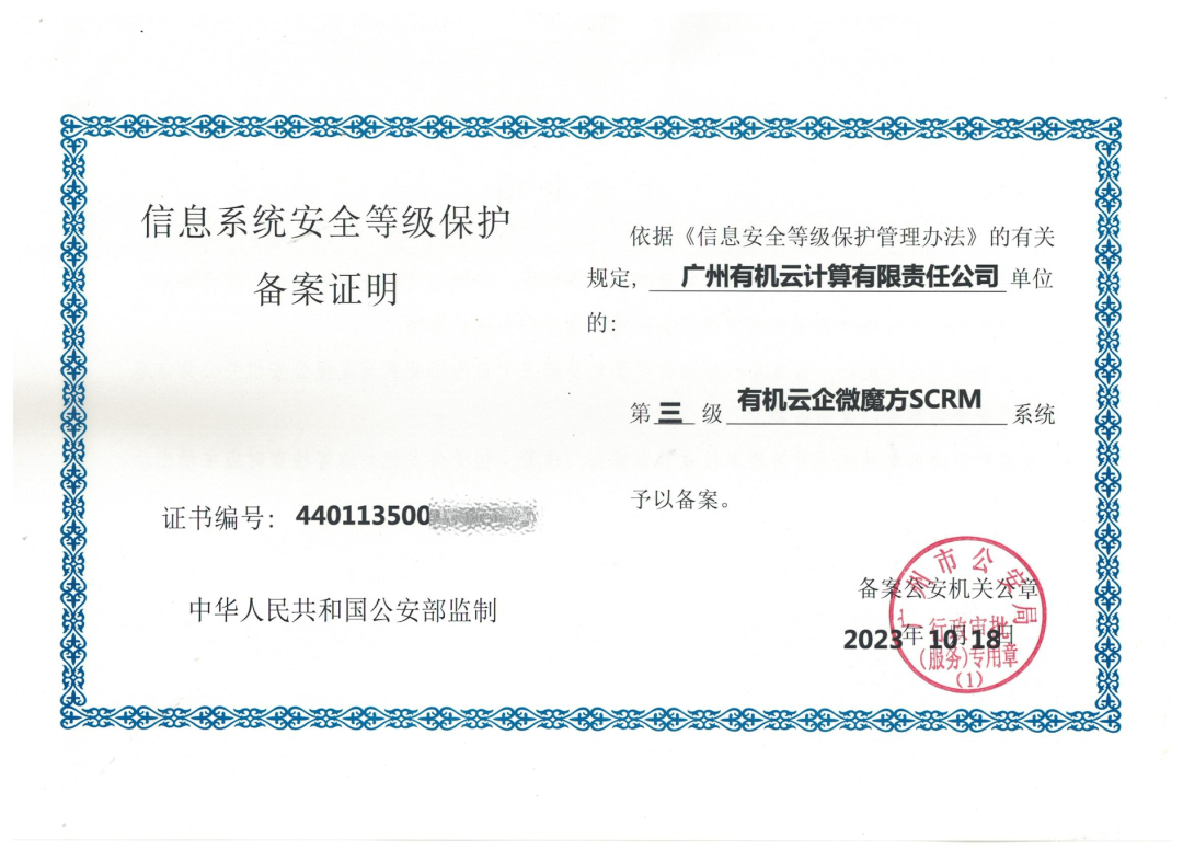 近日,有机云正式通过国家“信息系统安全等级保护”测试,获得由公安部核准颁发的网络安全等级保护三级认证。网络安全等级保护,是国家对信息系统安全等级保护状况进行检测评估的活动。根据相关规定,网络安全等级保护分为五个等级,其中第三级属于“监管级别”,是非银行金融机构能够获得的最高级别网络安全认证。