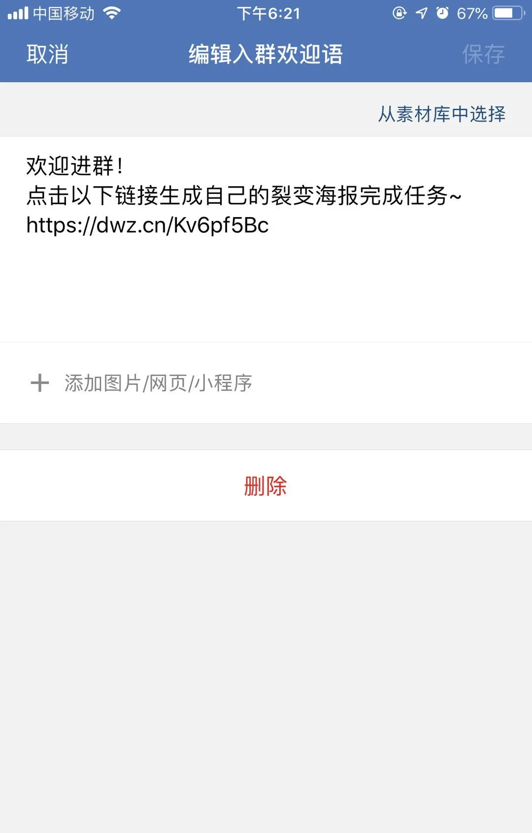 ③用户进群会自动发送入群欢迎语,传达任务,拉近距离