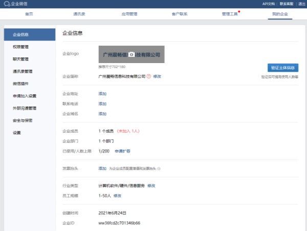 - 注意一个企业暂时可以设置并认证5个企业简称