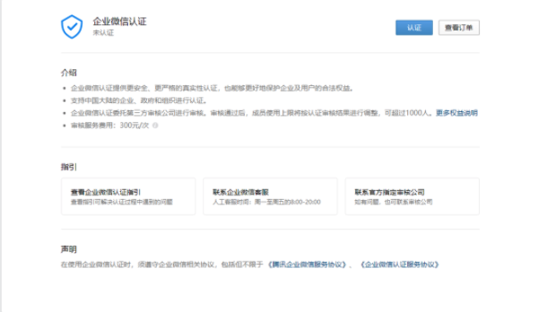 (2)企业微信支持两种认证方式:“通过微信公众号授权认证(快捷认证)”或“通过提交资料进行认证”