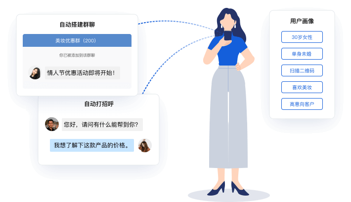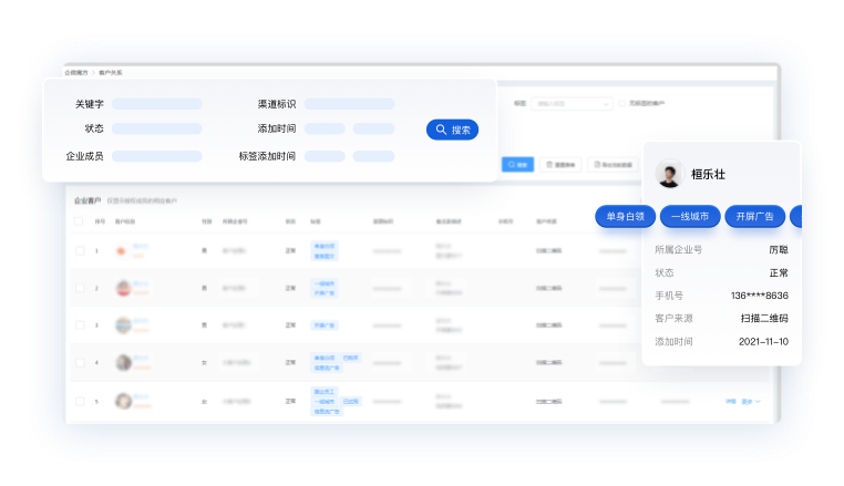 主动拓客、联系码、渠道活码、打通电销系统、发送加微短链。